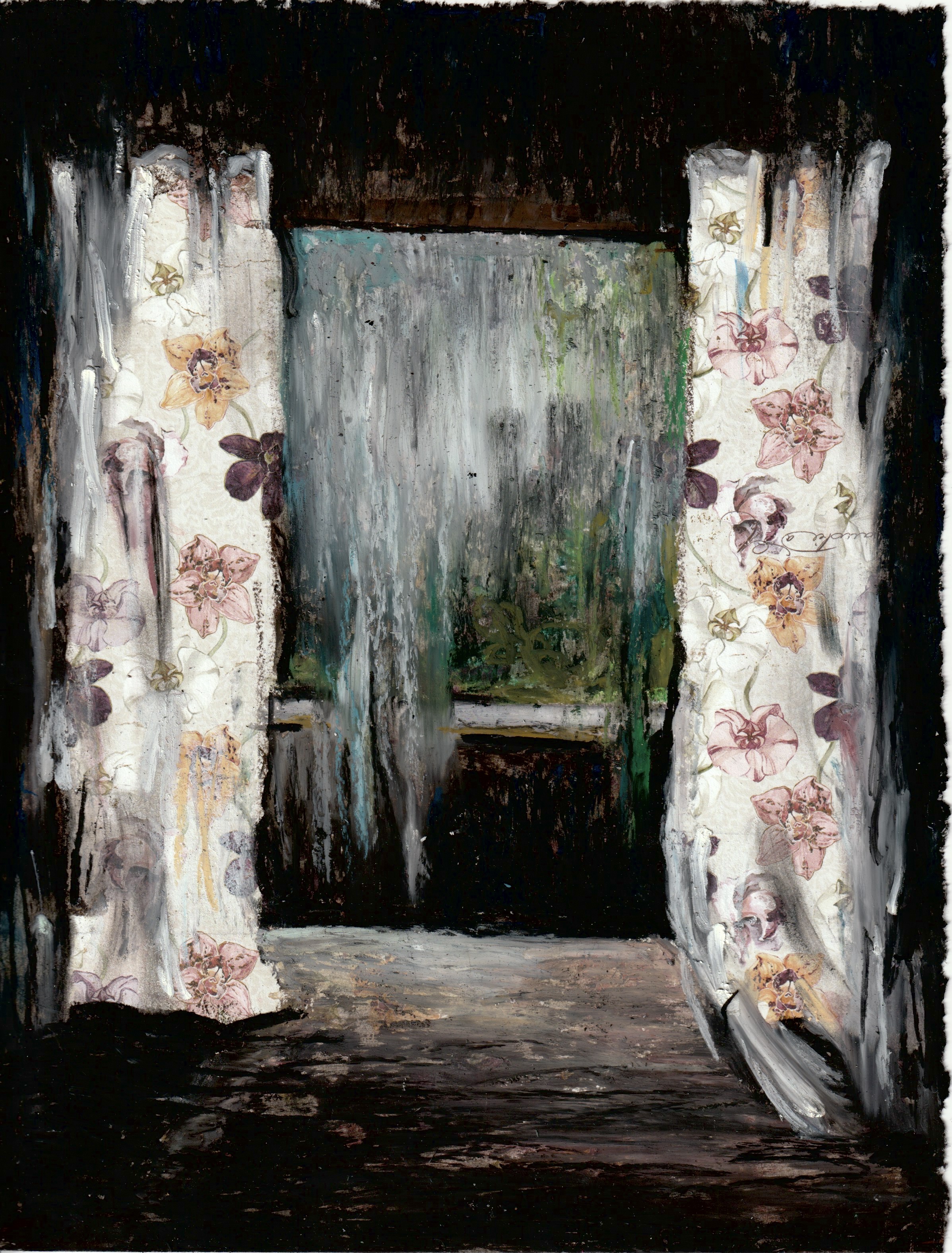 Suddenly the world become a room we visited only , 2021 Posted by LG on January 24, 2022April 20, 2022 Suddenly the world become a room we visited only , 26,5 x 21 cm, oil pastel on paper with pattern,2o21