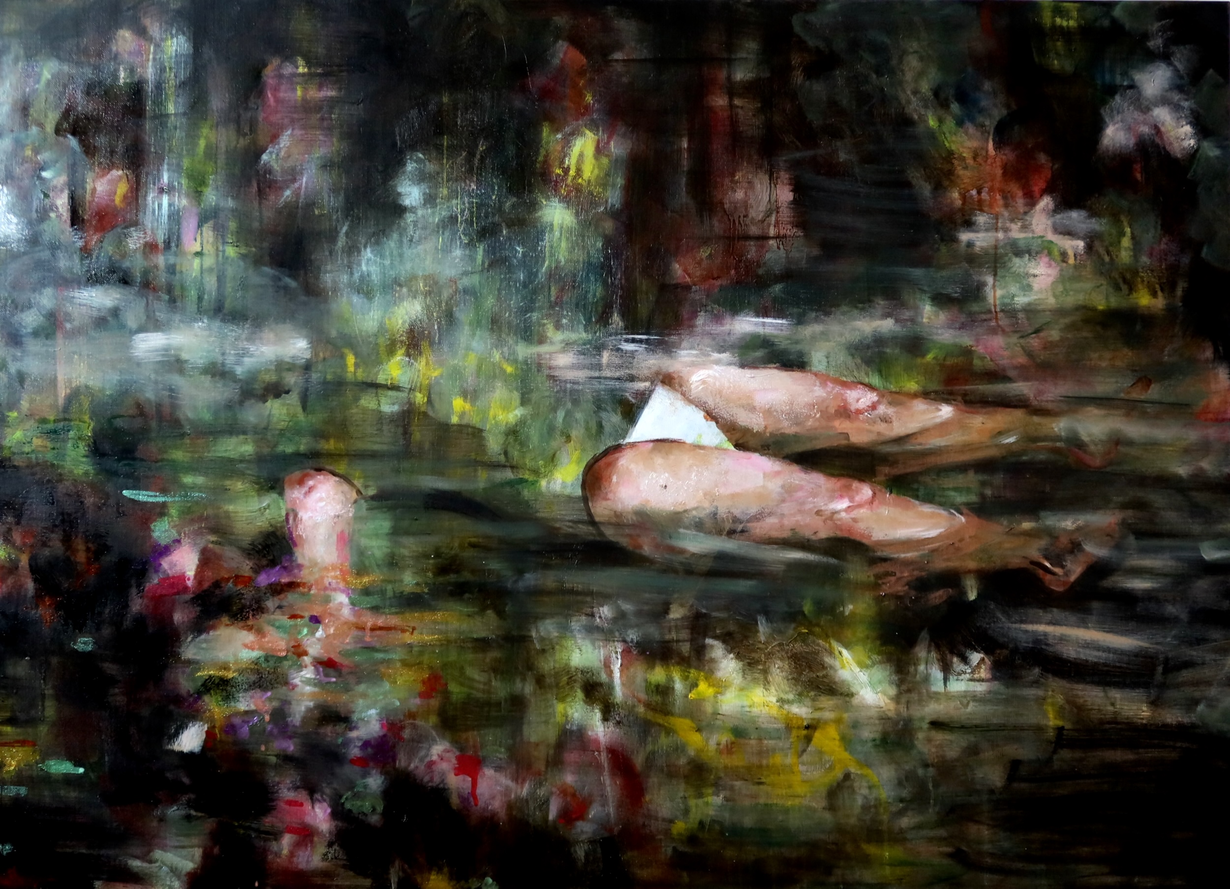 ophelia ,80X110cm Posted by LG on December 3, 2025December 3, 2025 Ophelia,80 X110cm, nailpolish oil on canvas,2025